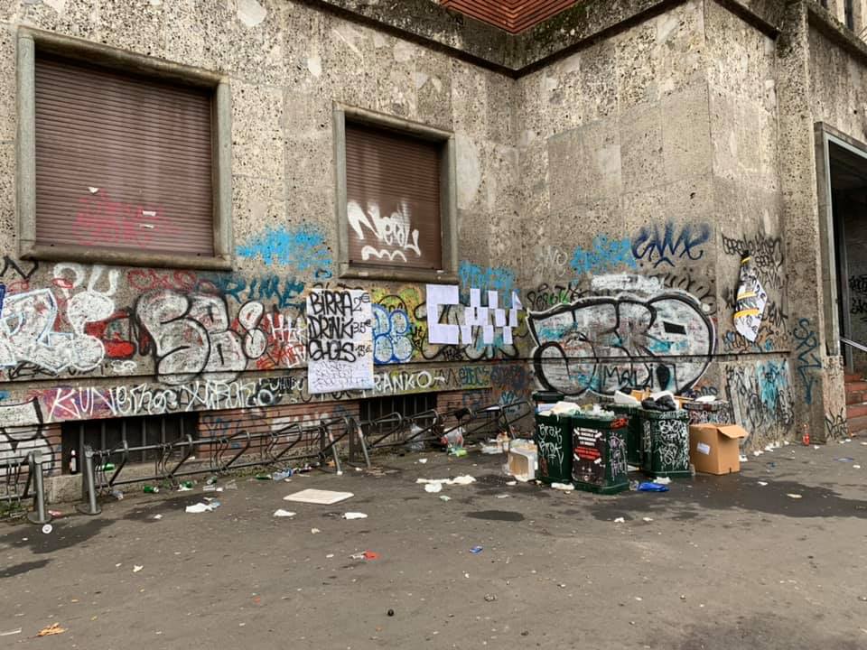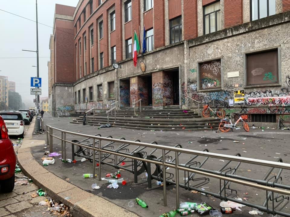 Domenica mattina al Virgilio, Milano. Resti della festa itinerante che si tiene il sabato sera davanti alle scuole cittadine.